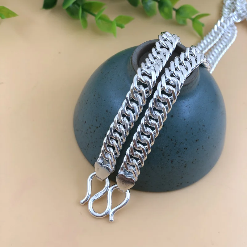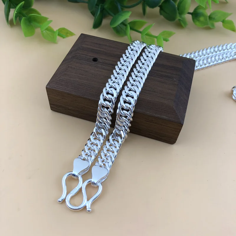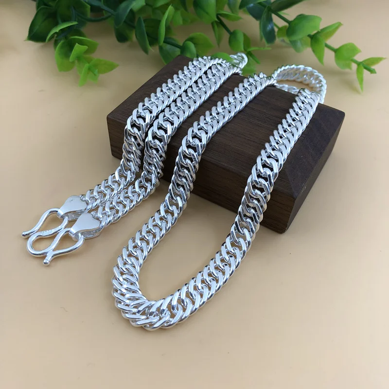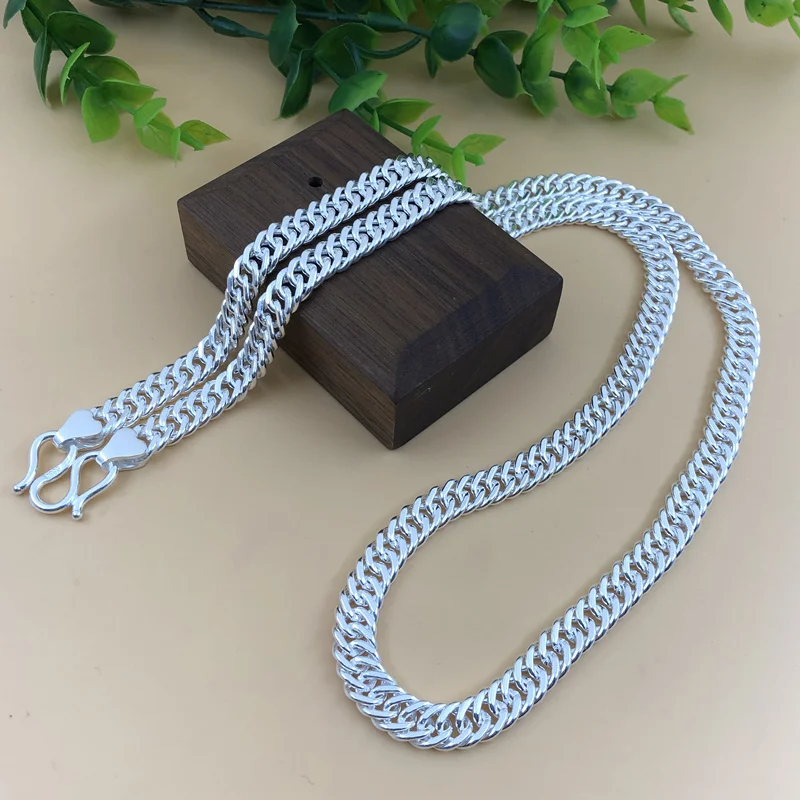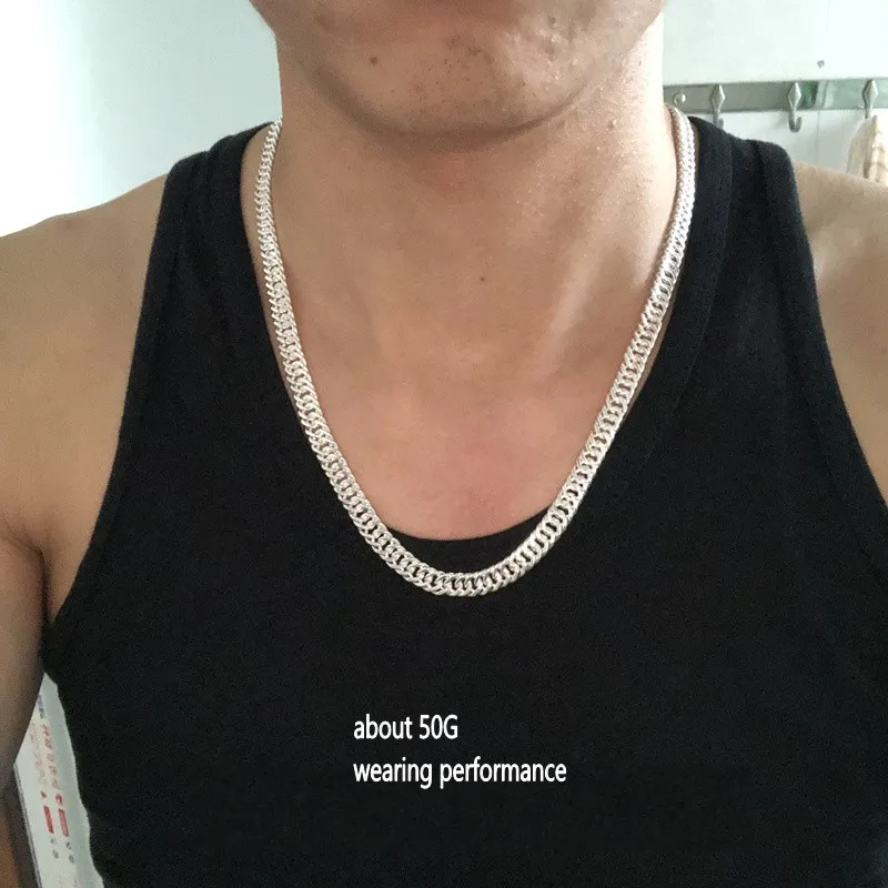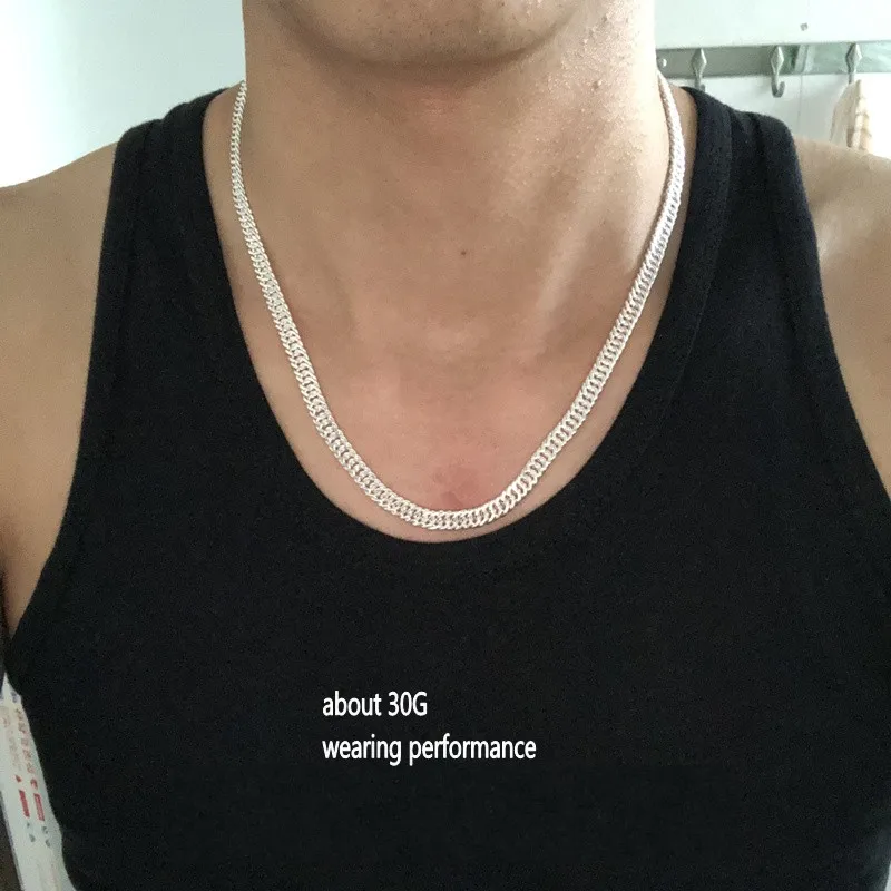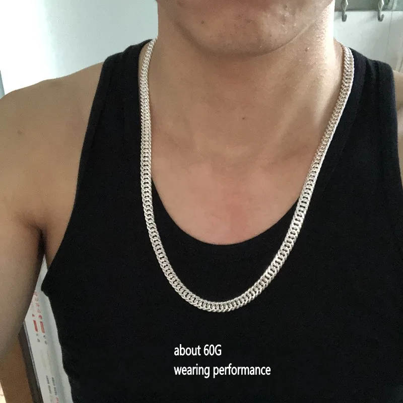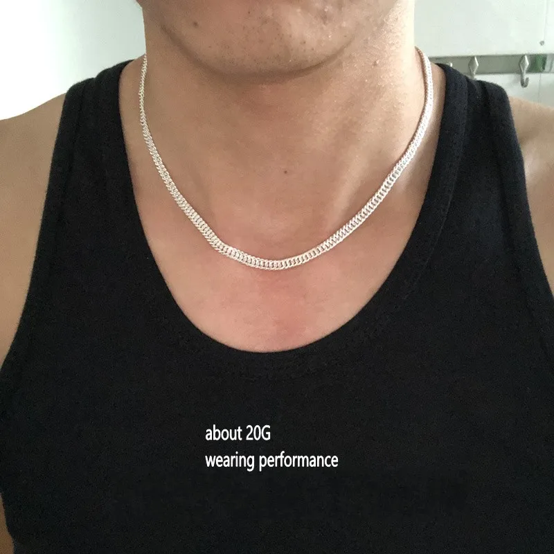 New S999 pure silver solid silver flat man necklace hip-hop whip chain domineering fashion silver necklace for man